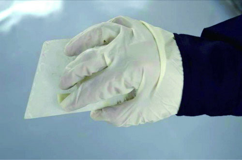 (7)如此重復(fù)地拌和,在這過程中注意觀察混合物顏色的均勻程度,直到原子灰充分拌和。如圖2-39所示。